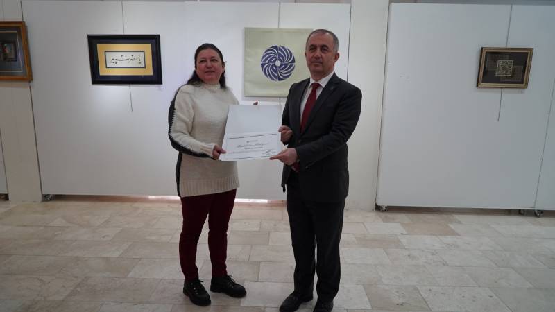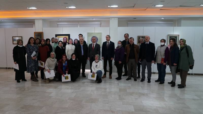 Doç. Mesude Hülya Doğru ve on yedi yüksek lisans öğrencisinin katıldığı “Dem Nakş Nefs” isimli karma serginin açılışı 14 Mart 2022 tarihinde saat 12.00’de Sanat Tasarım ve Mimarlık Fakültesi Sanat Galerisi’nde açıldı. Sergi açılışı Rektör Prof. Dr. Fatih Savaşan, Sanat Tasarım ve Mimarlık Fakültesi Dekanı Prof. Dr. Tahsin Turgay, Hukuk Fakültesi Dekanı Prof. Dr. Şafak Narbay, Sağlık Bilimleri Fakültesi Dekanı Prof. Dr. Dilek Aygin, İletişim Fakültesi Dekanı Prof. Dr. Yusuf Adıgüzel, Sanat Tasarım ve Mimarlık Fakültesi’nin öğretim elemanları, öğrenciler ve eserleri sergilenen yüksek lisans öğrencilerinin ailelerinden oluşan kalabalık bir izleyici grubunun katılımı ile gerçekleşti. Sanat Tasarım ve Mimarlık Fakültesi Geleneksel Türk Sanatları Bölümünden 2019-2020 ve 2020-2021 dönemlerinde mezun olan ve halen Sosyal Bilimler Enstitüsü Geleneksel Türk Sanatları Anasanat dalında ders ve tez öğrencisi olan sanatçı öğrencilerin ders dönemlerinde tasarladıkları sabır ile başlayıp şükürle bitirdikleri 46 eserin yer aldığı sergiyi sanatseverler 20 Mart 2022 tarihine kadar ziyaret edebilirler.