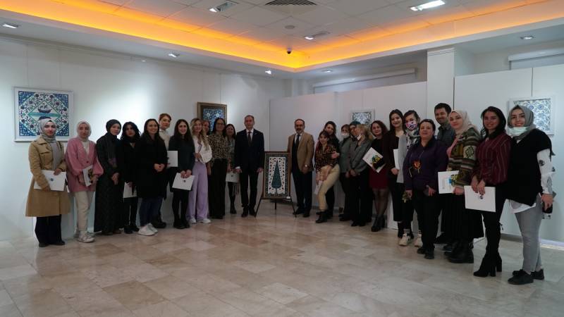 Sakarya Üniversitesi Sanat Tasarım ve Mimarlık Fakültesi Geleneksel Türk Sanatları Bölümü Çini Tasarımı ve Onarımı Anasanat Dalı öğrencilerinin “Bahar-ı Alem” isimli karma çini sergisi 28 Mart 2022 Pazartesi günü saat 12:30’da Sanat Tasarım ve Mimarlık Fakültesi Sanat Galerisi’nde açıldı. Sergi, Sakarya Üniversitesi Rektör Yardımcılarından Prof. Dr. Hatem Akbulut, Sanat Tasarım ve Mimarlık Fakültesi Dekanı Prof. Dr. Tahsin Turgay, Dekan Yardımcıları Doç. M. Hülya Doğru, Dr. Ör. Üyesi Dicle Öney, Çini Tasarımı ve Onarımı Anasanat Dalı Başkanı Öğr. Gör. Alev Demirkesen, Öğr. Gör Songül Ergün ve Arş. Gör. Emsele Bal, Fakültenin Bölümlerinden öğretim elemanları ve öğrencilerden oluşan kalabalık bir grup ile açıldı. Sergide özgün tasarım çalışmaları olan öğrenciler eserlerinin üretim süreçlerini davetlilerle paylaştılar. Kendilerine katılım belgeleri Prof. Dr. Hatem Akbulut ve Prof. Dr. Tahsin Turgay tarafından takdim edildi. Sergide yer alan ve Anadolu Selçukluları döneminden 16. Yüzyıla kadar farklı dönemlerden esintiler taşıyan eserler on altı öğrencinin geleneksel çini teknikleriyle uygulanması ile üretilmişlerdir. Sanatseverler sergiyi 3 Nisan 2022 tarihine kadar ziyaret edebilirler…