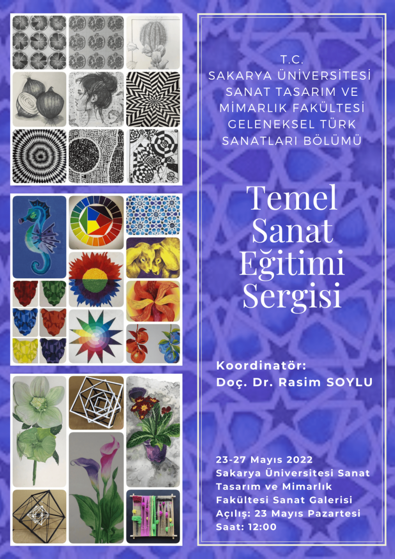 Sakarya Üniversitesi Sanat Tasarım ve Mimarlık Fakültesi Geleneksel Türk Sanatları Bölümü Temel Sanat Eğitimi sergisinin açılışı Sanat Tasarım ve Mimarlık Fakültesi Sanat Galerisi’nde 23 Mayıs 2022 Pazartesi günü saat 12:00’de gerçekleştirilecektir.