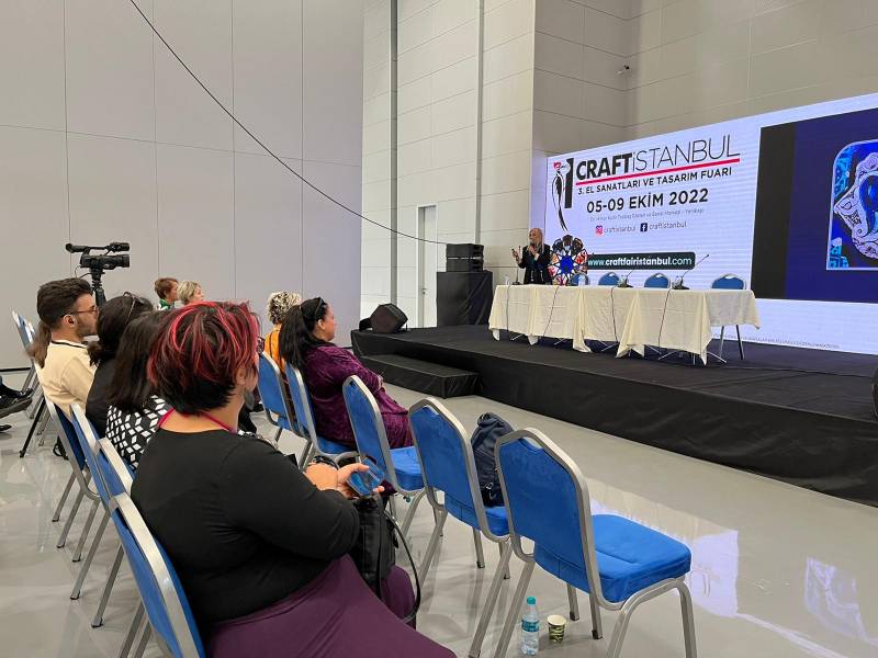 Prof. K. Didem Atiş koordinatörlüğünde gerçekleşen bu etkinlik kapsamında STMF Geleneksel Türk Sanatları Bölümü Öğr. Gör. Alev Demirkesen, 06 Ekim 2022 saat:13:45 de "Türk Çini Sanatının Dünü ve Bugünü" konulu bir söyleşi gerçekleştirdi.