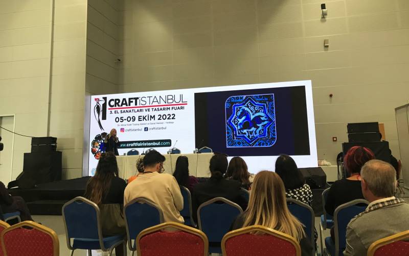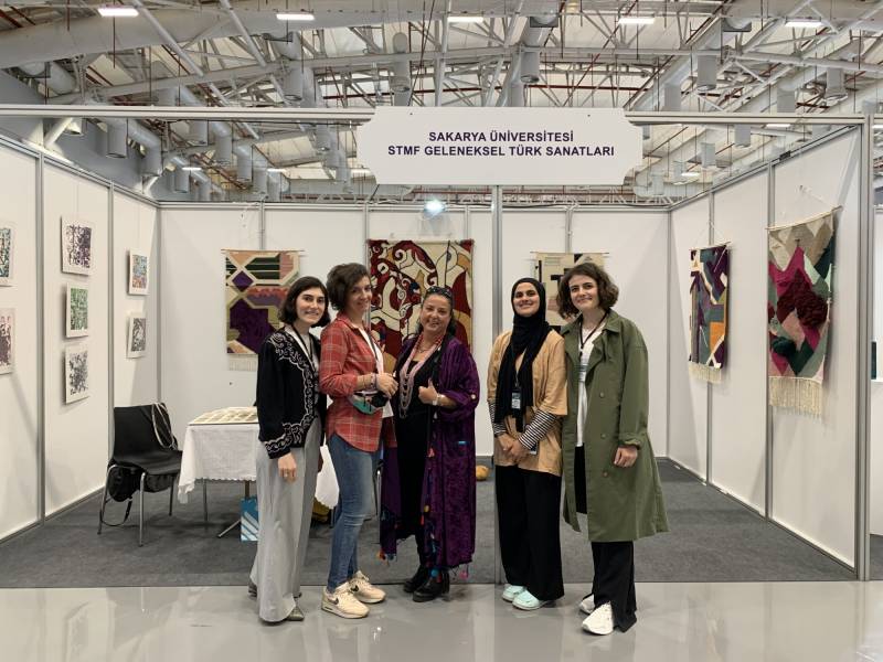 Bu yıl üçüncüsü düzenlenen “CRAFT İSTANBUL El Sanatları ve Tasarım Fuarı”, Yenikapı’da yer alan Dr. Mimar Kadir Topbaş Sanat ve Gösteri Merkezinde 05-09 Ekim tarihleri arasında sanatseverler ile buluştu. Fuara yerli ve yabancı sanatçılar, üniversitelerin el sanatları bölümleri, belediyeler, olgunlaşma enstitüleri ve kadın kooperatifleri, satın almacılar, sektör ve dernek vakıfları ile sanatsal makine ve malzeme tedarikçileri katıldı. Sakarya Üniversitesi; Sanat Tasarım ve Mimarlık Fakültesi, Geleneksel Türk Sanatları Bölümü öğrenci işlerinden oluşan bir sergi ile fuara katılan 16 üniversite arasında yer aldı. Ziyaretçilerin yoğun ilgi gösterdiği sergide İnan Burhanlı, Sinem Zorbaz, Aylin Bayram, Beyza Demir, Sena Karabayır, Rümeysa Bayazıt, Nuran Tekin, Ahmet Coşturan, Nuri Yiğit, Esad Yaldız, Ömer Faruk Kumru, Berkant Karabulut, Esra Yavuz, Sevinç Abay, Tuğba Özel, Göksu Kamacı, Gönül Özlü, Asiye Yavuz, Fatma Altunbaş, Öznur İsen, Hasret Gündüz, Edanur Vatansever ve Canan Niğdelioğlu’nun çini, hat, dokuma ve tezhip eserleri sergilendi. Ayrıca fuar kapsamında düzenlenen konferansta Geleneksel Türk Sanatları Bölümünde görev yapan Öğr. Gör. Alev Demirkesen, “Türk Çini Sanatının Dünü ve Bugünü” başlıklı sunumu ile sanatseverlere seslendi.