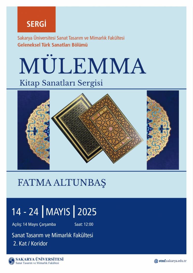 Sakarya Üniversitesi Sosyal Bilimler Enstitüsü Geleneksel Türk Sanatları Anasanat Dalı yüksek lisans öğrencilerinden Fatma Altunbaş’ın Kitap Sanatlarından (tezhip, minyatür, cilt, katı’) oluşan kişisel sergisi 14 Mayıs 2025 Çarşamba günü saat:12:00’de bölüm koridorunda açılacaktır. Sergi 14-24 Mayıs 2025 tarihleri arasında ziyaret edilebilecektir.